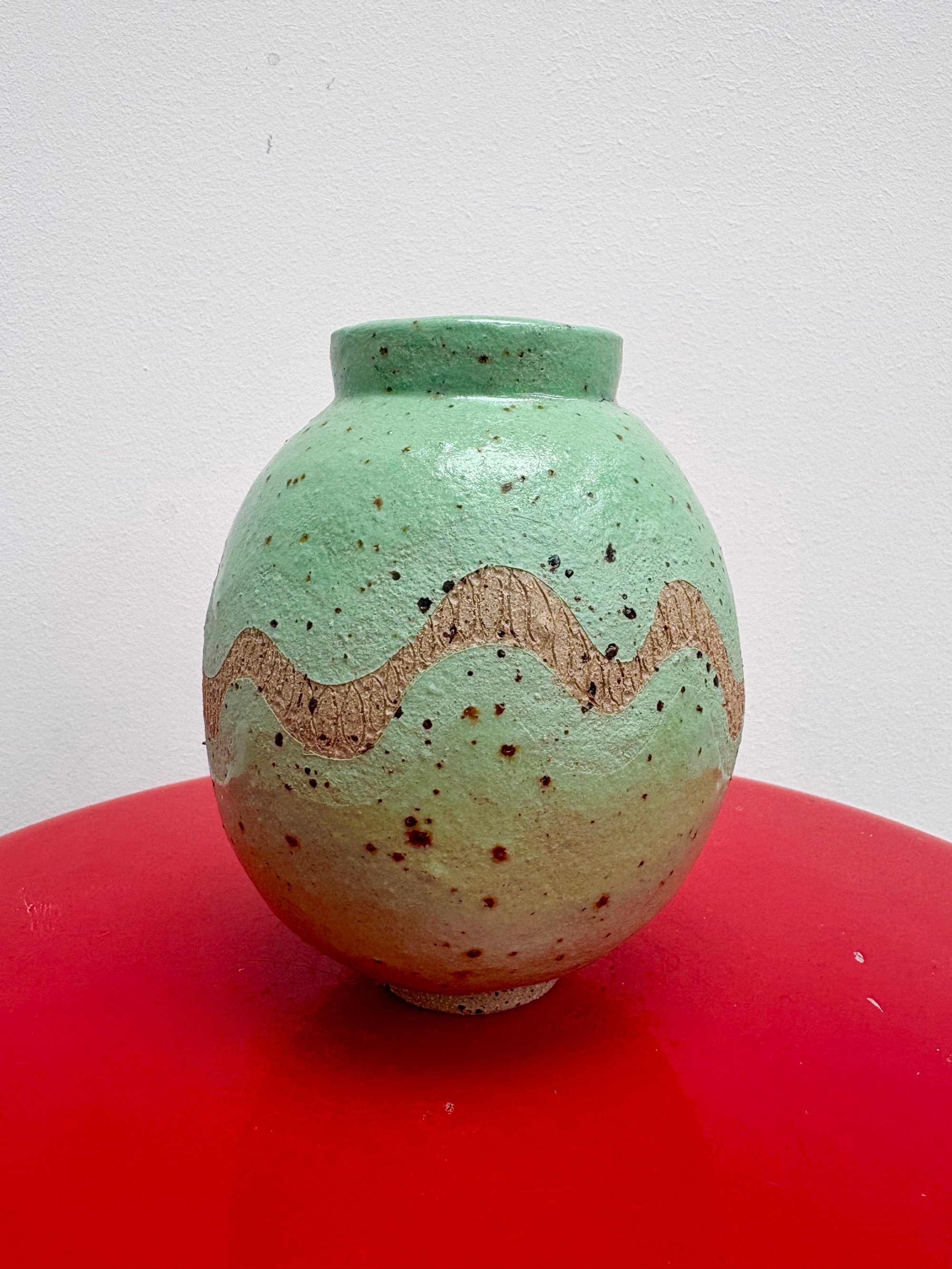 Beautiful green surface colour with a band of exposed clay through the middle.